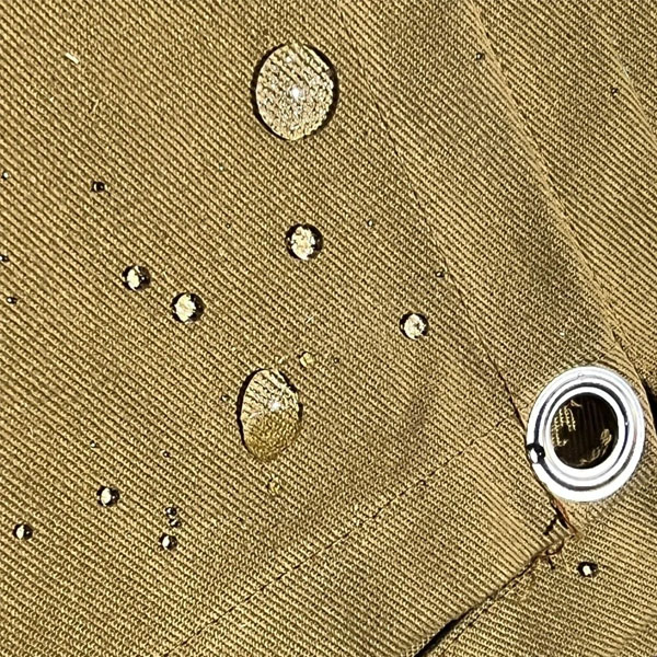 Our sand Cotton Canvas Tarpaulin is a High Quality, heavy duty cover made for strength and long-lasting use. These tarps are made from strong 14oz cotton duck canvas fabric and are water-resistant, making it best for outdoor and industrial use. Each tarp has double-sewn seams for extra durability and eyelets at 1m for secure fastening.